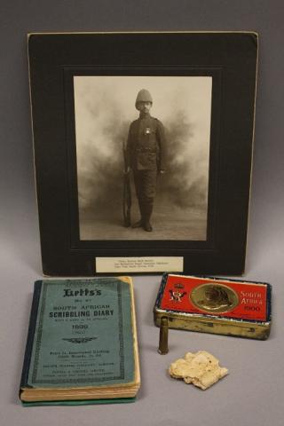 Walter Hill Moodie, who served with the 2nd Battalion, Royal Canadian Regiment of Infantry during the South African War (1899-1902), brought this piece of hardtack back as a souvenir, along with this shell casing from the first shot he fired at the Battle of Paardeberg, this Queen Victoria Chocolate tin, this diary, and other keepsakes. The South African War marked Canada’s first official deployment of troops overseas.