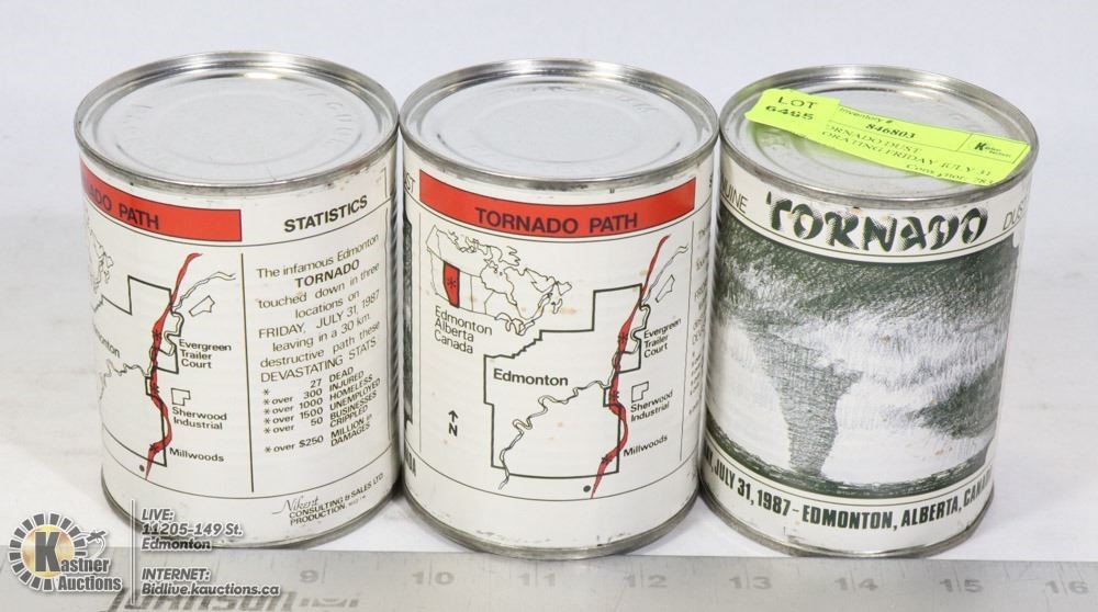 That’s why I was very intrigued to hear about a novelty souvenir item produced to commemorate the Black Friday tornado. Sold at auction on the anniversary of the event in 2020, aluminium cans purporting to contain genuine tornado dust were being resold on Kijiji earlier this year. These cans, created by a company called Nikent Consulting, had a map of the tornado’s path, stats about the effects, and were in mint condition.